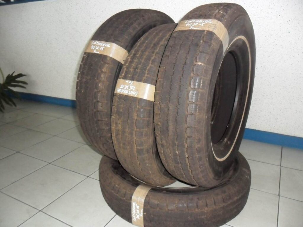 4 Pneus d’occasion quasi neufs collection avec liseré blanc (picots encore présents). Prix à l’unité. Nous contacter pour le coût éventuel d’un transport.